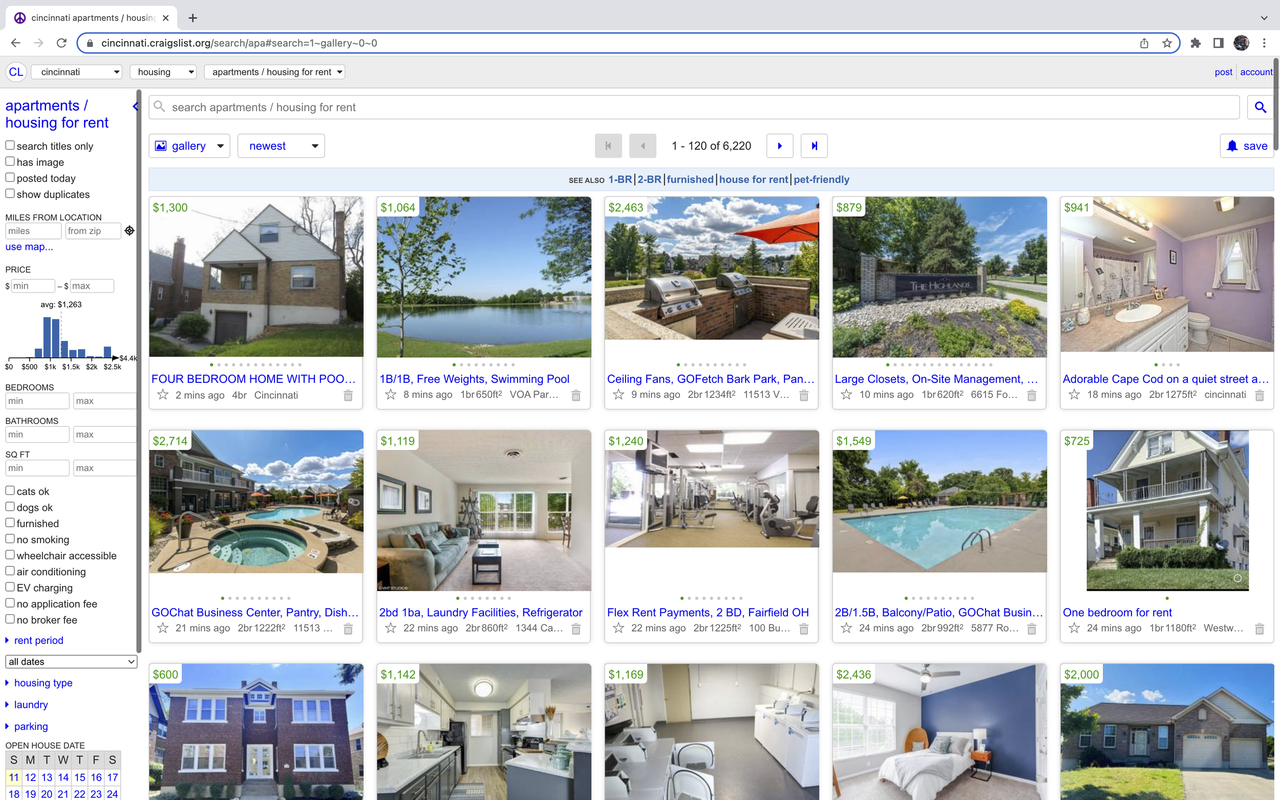 Task A: Search for Clifton housing that has images. Switch to map view and select first item. Create a new housing post.