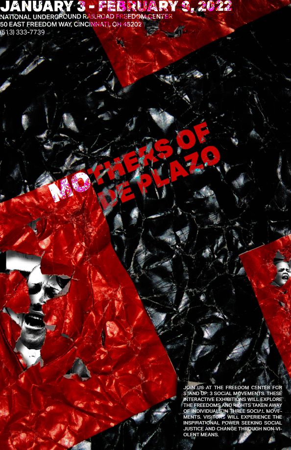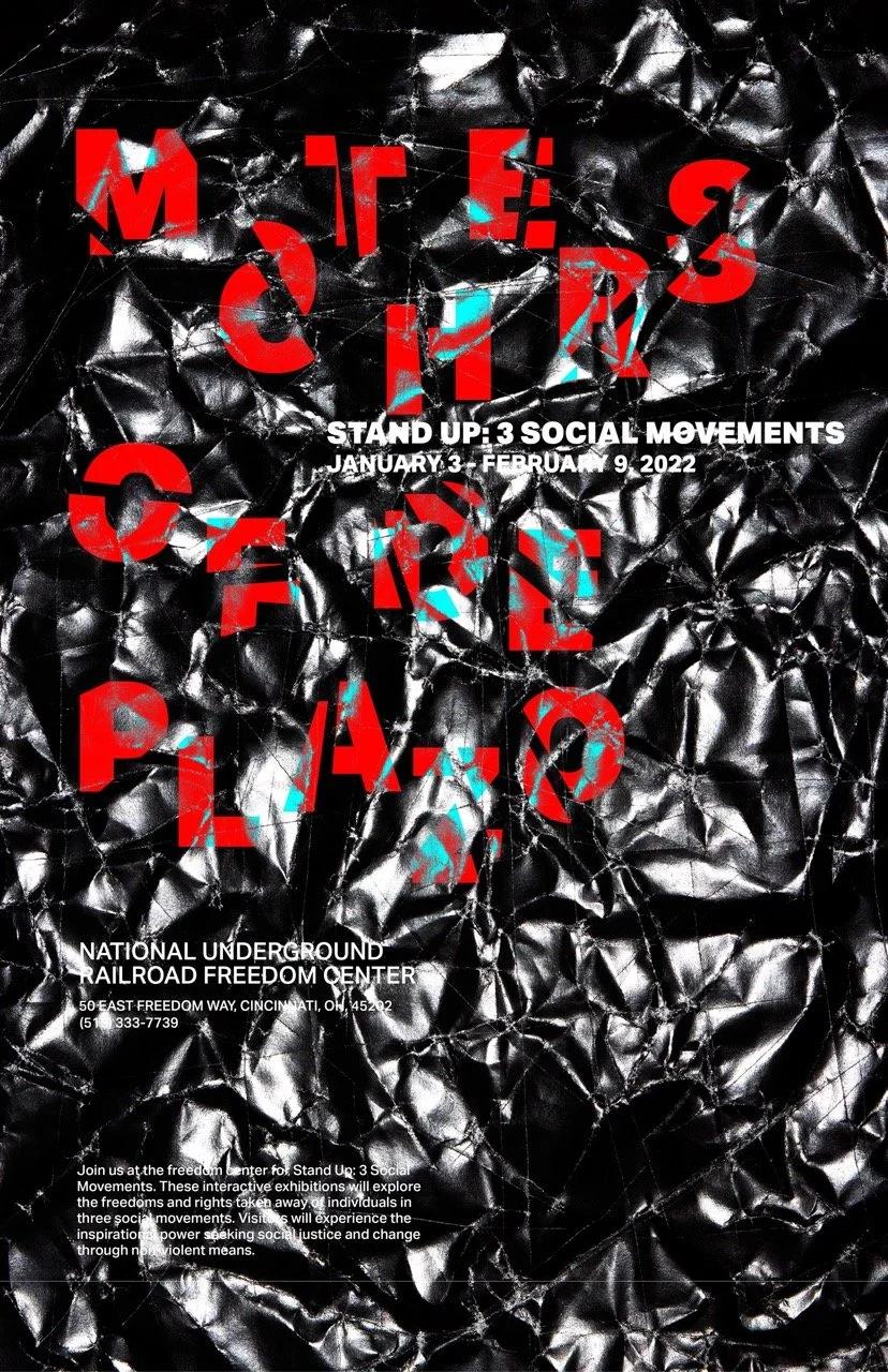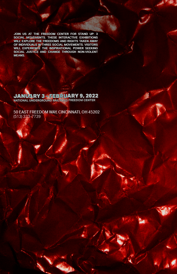 To create the background, I crumpled up black paper and scratched it up with an X-acto knife. The scratches and crumpled up effect provided texture and a sense of uneasiness and messiness. To have an intentional and cohesive color scheme, I used primary colors with the addition of white. I chose the typeface Atkiv Grotesk because of its boldness, quiet authority and ability to support my message without overpowering it. A 5 column grid system was applied to align the remaining type, such as: the title, body copy, place, date and time.